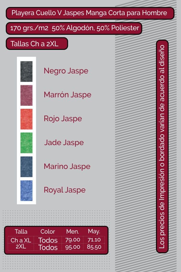 Playera Yazbek Cuello V Jaspe para Hombre y Mujer